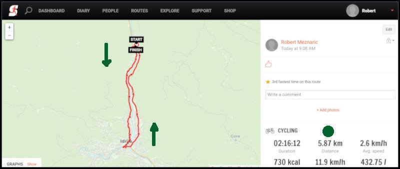 Ker sem odšel od doma še pred kosilom, mi je po vrnitvi in malenkost poznejšem kosilu še vedno pripadala ... Tudi v obratnem vrstnem redu hoje mi je uspelo. Od doma sem seveda odšel še pred kosilom, ker je hoja s praznim trebuhom lažja , in tudi kosilo bolj tekne, če veš da boš po njemu spil še kavo na kavču, "brez obveznosti" ... Hoja v obratnem vrstnam redu (najprej po kolesarski stezi v Idrijo in iz Idrije nazaj domov po cesti) je "malenkost daljša". ? Zanimalo me je tudi kako Sport Tracker "obravnava" dva ali več različnih "dnennih zapisov", in to uima urejeno tako kakor mora biti. ? ?2 točk