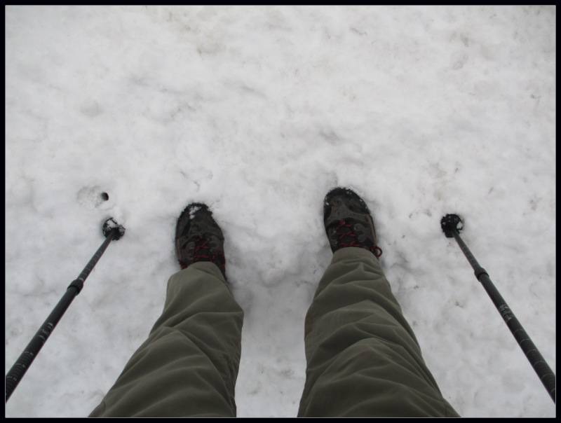 Včerajšnje fotografije montaže čeveljčkov na moje pohodne palice sem poslal tudi hčerki, in odgovorila mi je z vprašanjem, zakaj uporabljam pohodne palice njenega moža, ker so njene boljše, in danes pred odhodom sem šel najprej preveriti to, in ugotovil, da so njene nekdanje pohodne palice neuporabne, ker sem jih sigurno jaz polomil, verjetno med hojo proti idrijskemu dimniku topilnice živega srebra, ali pri spuščanju z njega. Trenutno skozi okno dnevne sobe vidim da sneži ...1 točka